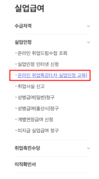 | 온라인 취업특강 수강 | 고용보험 사이트에서 특강 선택 및 수강 | 실업인정 기간 내 1개만 인정 |