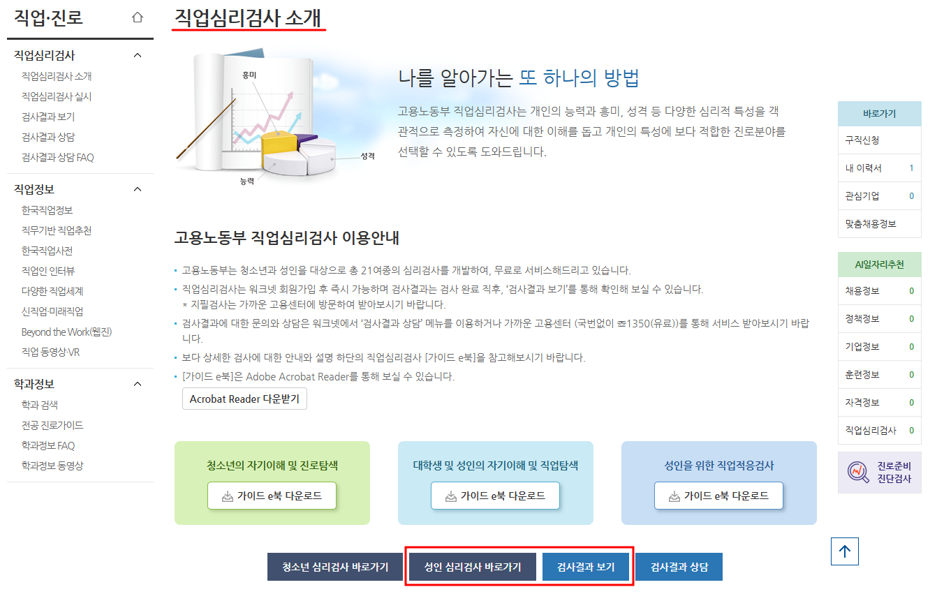 - 구직활동과 직업심리검사는 반드시 다른 날에 실시해야 합니다.